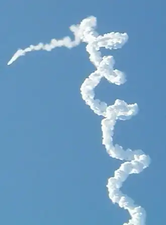 ![]() The M-V launch vehicle carrying ASTRO-E veering off course after launch on 10 February 2000. | |