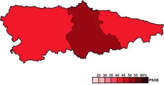 ![]() Constituency results map for the General Junta of the Principality of Asturias | |||||||||||||||||||||||||||||||||||||
