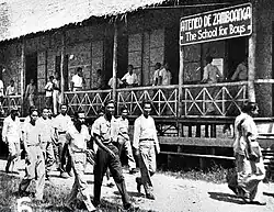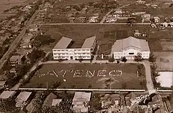 On February 13, 1946, a letter to the Jesuit Mission Superior was sent by Bishop Luis Del Rosario, urging the reopening of Ateneo to "counteract possible Protestant activities."[8] High school and intermediate classes were reopened in July 1946[6][10] and were held in a nipa-sawali building on the new site purchased by Fr. Eusebio before the war.[4][18] The new campus was shared with students from Pilar College for a year before they moved to their new campus at Cawa-Cawa Boulevard.[6][19] In September 1947, an extra 1.5 hectares was purchased to accommodate for more buildings.[6]