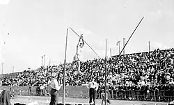The men's pole vault was a track and field athletics event held as part of the Athletics at the 1904 Summer Olympics programme. It was the third time the event was held. Seven pole vaulters from two nations participated. The competition was held on Saturday, September 3, 1904.[1] The event was won by Charles Dvorak of the United States, the nation's third consecutive victory in the event. With six of the seven vaulters, the United States swept the top three places—the first time that occurred in the pole vault, though the Americans had never had more than two vaulters compete previously. Through the 1904 Games, no American pole vaulter had ever placed lower than any non-American vaulter.
