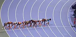 The race, as expected, was led by the defending Olympic champion and Olympic record holder Jakob Ingebrigtsen nearly wire-to-wire. However in the final 100 metres, Josh Kerr began to move quickly on the outside. As Kerr attempted to pass, Ingebrigtsen drifted slightly from the rail to force Kerr to run wide, allowing Cole Hocker of the United States, known for his finishing kick, to pass on the inside.[16] Kerr appeared to be in position to pull away and win down the home stretch, but Hocker, having run less distance out of the turn, caught him with about 10 metres remaining to win.[17]