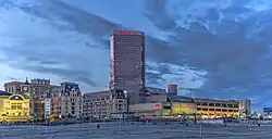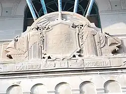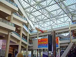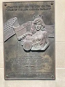 During this time, Atlantic City was led by mayor Edward L. Bader, known for his contributions to the construction, athletics and aviation of Atlantic City.[49] Despite opposition, he had Atlantic City purchase the land that became the city's municipal airport and high school football stadium, both of which were later named Bader Field in his honor.[50] He led the initiative, in 1923, to construct the Atlantic City High School at Albany and Atlantic Avenues.[49] Bader, in November 1923, initiated a public referendum, during the general election, at which time residents approved the construction of a Convention Center. The city passed an ordinance approving a bond issue for $1.5 million to be used for the purchase of land for Convention Hall, now known as the Boardwalk Hall, finalized on September 30, 1924.[51] Bader was also a driving force behind the creation of the Miss America competition.[52]