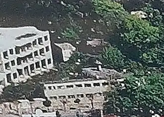 The building where the Atlas klub was located, shortly before demolition (in the middle) with the skeleton of the future apartment building (left)