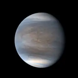 False-color image of the atmosphere of Venus in ultraviolet light, taken by the Akatsuki orbiter in October 2021
