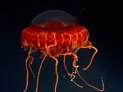 1. ^ Matsumoto, G.I.; Christianson, L.M.; Robison, B.H.; Haddock, S.H.D.; Johnson, S.B. (2022). "Atolla reynoldsi sp. nov. (Cnidaria, Scyphozoa, Coronatae, Atollidae): A new species of coronate scyphozoan found in the eastern North Pacific Ocean". Animals. 12 (6): 742. doi:10.3390/ani12060742. PMC 8944796. PMID 35327139.