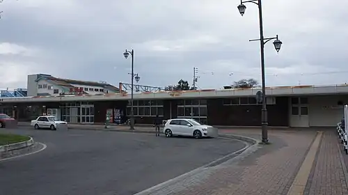 The station consists of one side platform and one island platform serving three tracks. The station has automated ticket machines, automated turnstiles which accept Kitaca,[2] and a "Midori no Madoguchi" staffed ticket office.