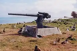 In February 1942, a Japanese submarine bombarded the atoll. In June 1942, the Battle of Midway was won by American forces. The Marines by that time had received reinforcements, both personnel and some newer and bigger guns, all of which were used by the Marine garrison when they engaged attacking Japanese A6M2 Zeros in June 1942.[3]