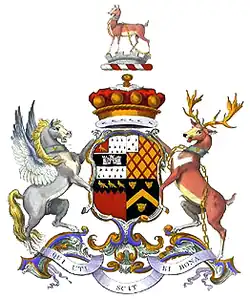 The 2nd Lord Berwick reached financial ruin, and all the contents of the house were auctioned in 1827 and in 1829; some were purchased by his two brothers.[9] He died in Italy in 1832, and his brother, William Noel-Hill, 3rd Baron Berwick inherited the estate.[13] William was a diplomat, who was posted in Italy for 28 years; described by Lord Byron as 'the only one of the diplomatists whom I ever knew who really is Excellent’, his collection of Italian art and furniture became part of Attingham's collection upon his inheritance. This included the tableware by silversmith Paul Storr.[16] William died in 1842, and his younger brother, Richard Noel-Hill, 4th Baron Berwick inherited; as the youngest son and a clergyman, he had not expected to inherit. His son, Richard Noel Noel-Hill, 5th Baron Berwick, inherited in 1848, and was a careful steward, introducing agricultural modernisations and clearing many of the estate's debts that had been accrued by his father and uncles.[17] He lived at Cronkhill on the estate and whilst there invented to eponymous Cronkhill rifle.[18]