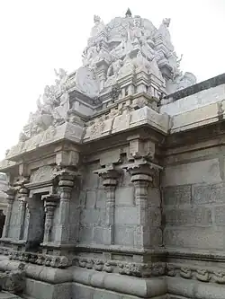 The original complex is believed to have been built by Pallavas, with later expansion by Cholas, while the present masonry structure was built during the Vijayanagara Empire during the 16th century. There are three rock-cut caves from the Pallava regime during the 10th century. The current Draupadi Amman shrine is believed to have been a Murugan temple.[2] There are inscriptions from lot of medieval and later Chola emperors like Rajaraja Chola I (985–1014), Kulothunga Chola I (1070–1120), Vikrama Chola (1118–1135), Kulothunga Chola II (1133–1150), Rajadhiraja Chola II (1166–1178), Kulothunga Chola III (1178–1218), Rajaraja Chola III (1216–1256) and Rajendra Chola III (1246–1279). There are inscriptions from Pandya kings like Maravarman Sundara Pandyan (1216–1238) and Maarvarman Vikrama Pandiyan. The contributions of the kings of the Vijayanagara Empire like Krishna Deva Raya (1509–1529), Sadasiva Raya (1542–1570) and Kampanna Udayar are also found in the inscriptions. There are also inscriptions from the Sambuvaraya period, during the regime of Sagaloga Chadravarathi Rajanarayana Sambuvarayar. In all, there are a total of 96 inscriptions in the temple compiled in the Annual Reports on South Indian Epigraphy for the year 1902 in numbers 386–391, year 1905 number 26 and year 1935 number 111–195.[4][5] Rajanarayana Sambuvaraya was a chieftain of Medieval Cholas whose contributions are documented in his inscriptions across various temples in modern-day Villupuram, Cuddalore, Tiruvannamalai and Kanchipuram districts and also in his Sanskrit work Madhuravijayam. He repaired, revived the services and inaugurated festivals of the temple.[6] In modern times, the temple is maintained and administered by the Hindu Religious and Charitable Endowments Department of the Government of Tamil Nadu.[2]
