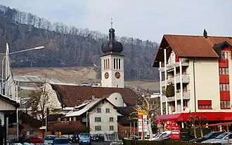 From the 2000 census, 3,589 or 56.0% are Roman Catholic, while 1,406 or 21.9% belonged to the Swiss Reformed Church. Of the rest of the population, there is 1 individual who belongs to the Christian Catholic faith, there are 113 individuals (or about 1.76% of the population) who belong to the Orthodox Church, and there are 121 individuals (or about 1.89% of the population) who belong to another Christian church. There is 1 individual who is Jewish, and 529 (or about 8.25% of the population) who are Islamic. There are 38 individuals (or about 0.59% of the population) who belong to another church (not listed on the census), 411 (or about 6.41% of the population) belong to no church, are agnostic or atheist, and 200 individuals (or about 3.12% of the population) did not answer the question.[8]