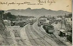 The main railway from Marseille passes through the commune splitting into two lines - one going north-west and one going south with a station in the town.