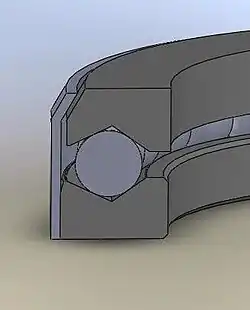 In 1893, Knowlton & Beach introduced a near frictionless ball bearing to the market, presumably the first such bearing of its time, and in 1900, the company's bearing business was incorporated as the Rochester Ball Bearing Company and became a division of Knowlton & Beach. A year later in 1901, Knowlton & Beach further expanded their bearing business with the acquisition of the Auburn Ball Bearing Company, a manufacturer of ball and roller thrust bearings established in 1898 in Auburn, New York. Auburn Ball Bearing became the second division of Knowlton & Beach and was relocated to Rochester, New York to continue its operations.[2] Auburn Ball Bearing's primary product, their Auburn Four-Point-Cone-Contact Ball Thrust Bearings, incorporates an exclusive "V" groove raceway, designed to distribute the load evenly over the balls as they travel on four points of contact, creating a straight line rolling effect and decreasing the amount of friction created by a full contact round groove design.[3] Auburn Ball Bearing Company manufactured various sizes and configurations of their "V" groove thrust bearings for applications in industries including paper box manufacturing, railroad jacks, U.S. submarines, and U.S. Government Light Houses. Early company documentation illustrates Auburn Ball Bearings were used to support revolving lenses in the Carysfort Reef Light, Jupiter Inlet Light, and the St. Simons Island Light in the early twentieth century.[3]
