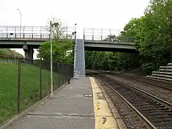 The bare platform and steep metal stairs make Auburndale station inaccessible. In the future, the station is planned to be rebuilt with a high-level platform and elevators or ramps to street level to meet ADA guidelines. In April 2004, the Boston Regional Metropolitan Planning Organization voted to add $368,000 (funded by a federal earmark) for planning Auburndale renovations to its 2004-2008 spending plan.[14] However, the project was not pursued at that time.