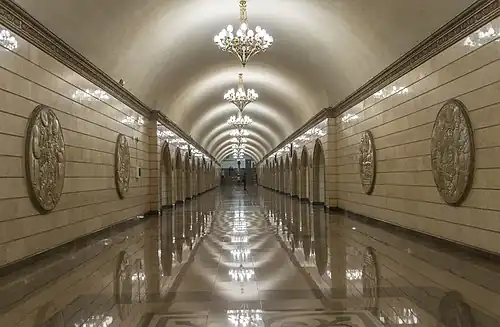 Auezov Theater (Kazakh: Мұхтар Әуезов атындағы театры, Mūhtar Äuezov atyndağy teatry; Russian: Театр имени Мухтара Ауэзова) is a station on Line 1 of the Almaty Metro. The station opened on December 1, 2011.[1]