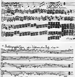 The beauties of many examples of graphic notation are not, in fact, a feature of eye music. As novel and attractive as the graphics may be in these scores, they function entirely as performance indications or true records of compositional method (such as the Steiner score shown here). Also often seen are graphical or conceptual art works that use the symbols of music notation but are not performing scores at all, such as Erwin Schulhoff's 1919 In futurum (Zeitmaß-zeitlos)[14] and Cornelius Cardew's Treatise.