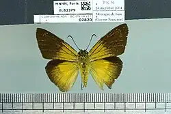 - ^ Siewert, Ricardo Russo; Lemes, José Ricardo Assmann; Mielke, Olaf Hermann Hendrik; Casagrande, Mirna Martins (2022-03-03). "Taxonomic revision of the Neotropical Augiades Hübner, [1819] (Lepidoptera: Hesperiidae)". Zootaxa. 5105 (2): 237–252. doi:10.11646/zootaxa.5105.2.4. ISSN 1175-5334. PMID 35391304.