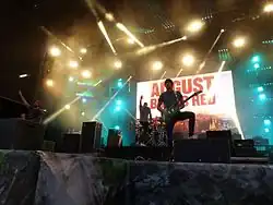 Since the members of the band are Christian, their beliefs are sometimes reflected in their writing and lyrics. However, these lyrics aren't meant to be religious but rather, positive and in songs such as "Fault Line", for the band's fans. Brent Rambler said in a 2016 interview, "We don't preach from stage, and we made the active choice that this band is about music, and being a positive influence. Since a lot of people correlate Christianity for positivity, that label has stuck with us."[84] Recently some of the members have stated in interviews that not all of the band are Christian.[85] They have said that they now just hope to spread positive messages in their music and lyrics, whether they are perceived as spreading a Christian message or not.[86] In a 2019 podcast, Matt Greiner stated that the band decided to drop their Christian label in 2012, after disputes within the band over what kind of message they were trying to spread, and whether their main intention was to make music or to spread a Christian message. Although the decision initially was met with disapproval by Greiner and Luhrs,[87] members of the band continue to state that August Burns Red is not a Christian band.