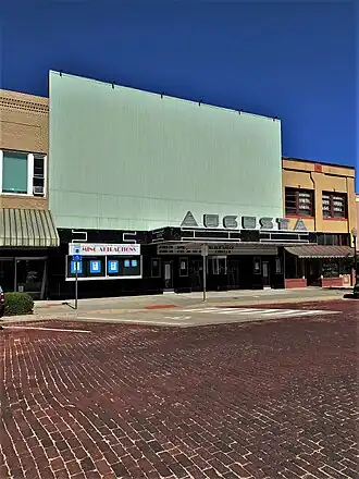 The Augusta Theater is a movie palace theater located in the city of Augusta, Kansas, which was built in about 1935. Designed by architect L. P. Larsen, the walls are decorated with large murals depicting classical scenes. It was the first theater to use neon lighting exclusively. Considered to be a landmark of the Art Deco era, it became home of the Augusta Arts Council.