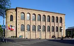Already the city of the 1st century A.D. had archways at the borders of the civil buildings, which, however, did not have a fortificatory character, but were designed as triumphal or honorary arches. Foundations of such buildings could be proved archaeologically at the city-side bridgehead of the Moselle bridge, between Simeon- and Moselle-street as well as a blocked rest in an arch of the imperial thermae. They probably formed the conclusion of the founding city of the 1st century even before the construction of the Circus and the amphitheater.[47]