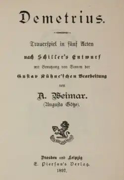 - Demetrius, tragedy in five acts, premiered Weimar 1893 (1897)