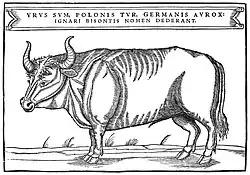 - ^ Rokosz, M. (1995). "History of the Aurochs (Bos taurus primigenius) in Poland" (PDF). Animal Genetics Resources Information. 16: 5–12. doi:10.1017/S1014233900004582. Archived from the original (PDF) on 14 January 2013.
