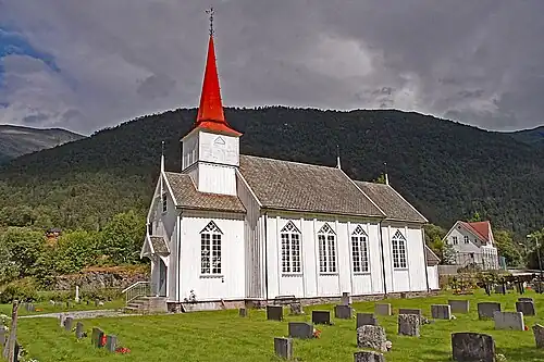Austefjord Church (Norwegian: Austefjord kyrkje) is a parish church of the Church of Norway in Volda Municipality in Møre og Romsdal county, Norway. It is located in the village of Fyrde, at the eastern end of the Austefjorden. It is the church for the Austefjord parish which is part of the Søre Sunnmøre prosti (deanery) in the Diocese of Møre. The white, wooden church was built in a long church design in 1879 using plans drawn up by an unknown architect. The church seats about 150 people.[1][2]