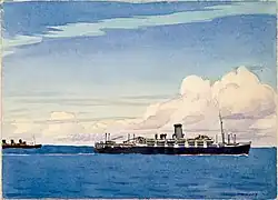 Deans was held in Austria at Stalag XVIII-A, near Wolfsberg for well over a year. By this time, the war in Europe was drawing to a close and conditions in the POW camp grew steadily harsher.[24] Despite this, Deans still painted and sketched and by early 1945 had accumulated a portfolio of nearly 300 works. When the camp's POWS were ordered to force march towards Germany, he packaged them up for the Red Cross to collect. The collection of art works were never retrieved and were lost. While on the march, the guards' attention to their charges declined and security became lax with the war all but over. With a group of others, Deans was able to make contact with American forces and made his way back to England. Before he could leave for New Zealand, he had to appear at the trial of Roy Courlander, a New Zealander who had joined the British Free Corps. Once this was complete, he departed England aboard the SS Mooltan on 2 December 1945, arriving back in New Zealand by the end of the year.[25]