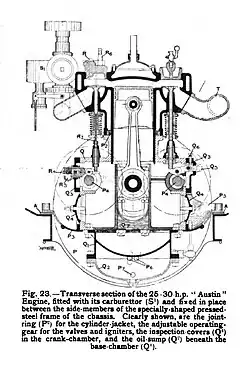 - ^ The 15-20 used the same engine as the 25-30 except that the cylinder bores were only 4 inches (100 mm) not 4+1⁄2 inches (110 mm). The following year with a slightly increased bore, 4+1⁄8 in (100 mm), the 15-20 was sold as Austin's 18-24
