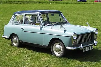 The Austin A40 Farina is a small, economy car introduced by Austin in saloon (1958) and A40 Countryman (1959) estate versions. It has a two-box body configuration. It was badged, like many before it, as an A40, consistent with Austin's naming scheme at the time, based on the approximate engine output in horsepower; and to distinguish it from other A40 models, it was also given a suffix name – this one being the Farina, reflecting the all-new design by Italian Battista Farina's Pinin Farina Turin studio.