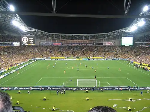 The second leg match at Stadium Australia in Sydney was a tight affair, with Mark Bresciano scoring the games only goal after 90 minutes, sending the match into Extra Time with the scores locked at 1–1 on aggregate. The match would go to penalties, with Australian goalkeeper Mark Schwarzer saving two penalties. John Aloisi scored the winning penalty to send Australia through to the World Cup for the first time in 32 years.[24]