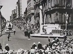 The meaning and significance of Australia Day has evolved since the first records of celebration in 1808, with contested views on the day existing since at least 1888.[5] Previously, the states celebrated different days that acknowledged their founding, such as Regatta Day in Tasmania, Queensland Day in Queensland or Foundation Day in Western Australia, and the celebration of the first Anniversary Day or Foundation Day (as the day was called) by New South Wales in 1818 was seen in a similar light.[5] Following Federation in 1901, moves for a national holiday gained pace (prompted by lobbying by the Australian Natives' Association which celebrated ANA Day), with the name Australia Day and the date of 26 January finally selected in 1935, with a public holiday at or around that date in all states in 1940.[6][5] The first prominent protest also occurred around this time in 1938, with the first Day of Mourning held by the Australian Aborigines' League. In 1994, the date was fixed in all jurisdictions on 26 January when the practice by some states of holding the holiday on a Friday in late January for a long weekend was dropped.[7]