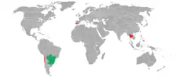 | Distribution map of Australoheros facetus, green denotes the native range, red the introduced range | |