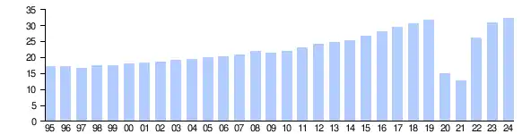 - ^ "Austria: International tourist trips". Our World In Data. August 17, 2024.