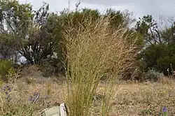 Austrostipa nodosa is a widespread grass species found in Australia and New Zealand. This bunchgrass can grow up to 1.0 metre (3.3 ft) in height and typically flowers after rain.[1][2]