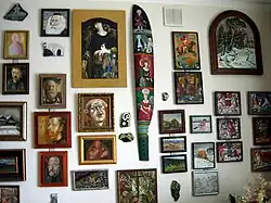 The Autograph" Gallery's collection is made up of works created by artists of several generations and various artistic styles.[1] Among them are both well-known and emerging artists from Yekaterinburg, Chelyabinsk, Ufa, Moscow, Saint Petersburg, and also painters and graphic artists from Germany, Israel, China and Czech Republic.[3] They are all friends of the artistic couple Misha Brusilovsky and Tatiana Nabrosova-Brusilovskaya. In 2004, thanks to the charitable organisation for Russian traditions "Our Family", with the participation of the journal "Our Heritage" and the Canadian Foundation for Gender equality, an exhibition from the "Autograph" Gallery was held as part of the project "Support for women's participation in the visual arts". At this 170 small-format pieces by more than 100 artists from the Ural-Siberia region and also from Moscow and Saint Petersburg were displayed.[5] On 22 February 2008 in The Irbit State Museum of Fine Art, the exhibition "Herman Metelev. Paintings and drawings, from the museum's collection and from private collections" opened to mark the artist's 70th birthday. Twenty eight small-format paintings by Herman Metelev were displayed from the "Autograph" Gallery.[6] Gatherings of artists are regularly held in the "Autograph" Gallery, as are competitions for the best painting of the year.[4]