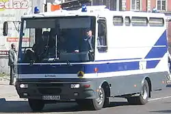 A special version for prisoner transport, Autosan H6-ZK, was also produced.[6] The first Autosan H6-ZK was built in 1993 based on the Autosan H6-04. The bus had 17 seats for inmates and 3 for guards, and it was equipped with a toilet. In 1994, two more prison transport vehicles were built based on the Autosan H6-10 body.[7]