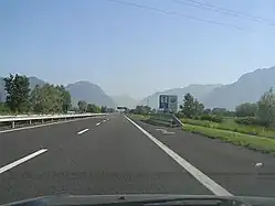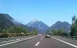The Autostrada A23 or Autostrada Alpe-Adria ("Alps-Adria motorway") is an autostrada (Italian for "motorway") 120 kilometres (75 mi) long in Italy located in the region of Friuli-Venezia Giulia which connects the Autostrada A4 (Turin–Trieste) near Palmanova via Udine to Tarvisio and the Austrian A2 Süd Autobahn. It is a part of the E55 European route. The Autostrada A23 is one of the main transport links between Northeast Italy and Central Europe.