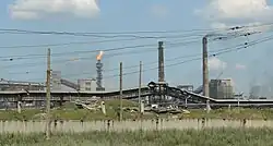 Avdiivka received city status in 1956.[8] In October 1959, construction on the Avdiivka Coke Plant began. The plant became operational on 30 November 1963. It became the largest coke-chemical producer in Ukraine.[8][7] Also in 1963, Avdiivka was removed from Avdiivka Raion again,[8] to briefly become a city of oblast significance.[7] From 1965 it was included as part of Yasynuvata Raion, until 1990 when it became a city of oblast significance again.[8] By 2001, its population was 37,200.[9]