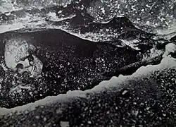 Archaeologists found a man's body under one of the toppled stones in 1938. He had been carrying a leather pouch, in which were three silver coins dated to around 1320–25, as well as a pair of iron scissors and a lancet. From these latter two items, the archaeologists surmised that he had probably been a travelling barber-surgeon who journeyed between market towns offering his services.[65] It appears that the death of the barber-surgeon prevented the locals from pulling down further stones, perhaps fearing that it had in some way been retribution for toppling them in the first place, enacted by a vengeful spirit or even the Devil himself.[66] The event appears to have left a significant influence on the minds of the local villagers, for records show that in the 18th and 19th centuries there were still legends being told in the community about a man being crushed by a falling stone.[66]