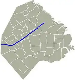 Avenida Juan B. Justo is an avenue that runs through Palermo and Recoleta neighborhoods of Buenos Aires, Argentina, and goes from southwest to northeast, parallel Pueyrredón avenue. It starts at Santa Fe avenue, and ends at Avenida General Paz.