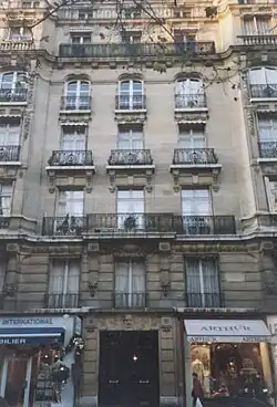 The avenue includes several buildings by Pierre Humbert, such as numbers 122 and 167 (the latter built in 1911 for Humbert's family). Humbert also built number 124, on the site of the hôtel particulier where Victor Hugo spent his last days (having as his address "Mr Victor Hugo, In his avenue, in Paris").[2][3] The 1907 building's magnificent façade won several prizes and includes a sculpture of Hugo's face by Fonquergne. The Haitian president Lysius Salomon died at number 3 on 19 October 1888.