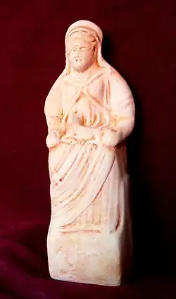 In Gallo-Roman religion, Dea Aveta was a mother goddess, also associated with the freshwater spring at Trier in what is now Germany.[1] Aveta is known mainly from clay figurines found at Toulon-sur- Allier in France[2] and at Trier. These figurines show the goddess with infants at the breast, small lap-dogs, or baskets of fruit.[1] There was a temple dedicated to Aveta in the Altbachtal complex at Trier.[3] Her name is also known from inscriptions found in Switzerland and the Côte-d'Or (France).[4]