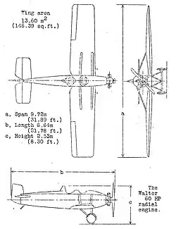 - Powerplant: 1 × Walter NZ 60 five-cylinder air-cooled radial piston engine, 45 kW (60 hp)