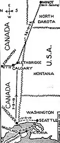 North Dakota air route of 1925 - July 12, 1911 Thomas McGoey flies the first North Dakota designed and built aircraft, the Kenworthy-McGoey flying machine at Grand Forks.[3]