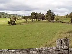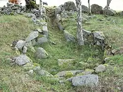 The area is noted for its prehistoric chamber tomb stones which are said to be particularly old by some sources, although they have not been dated reliably.[8][9] The site contains a cairn which is very circular in shape except for a slight flattening at the entrance, where part of a lignite amulet has been unearthed.[9][10] The tumulus is about 40 feet in diameter.[1]