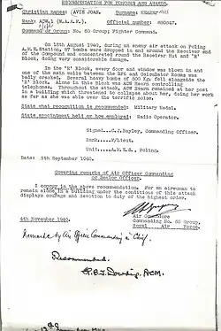 - ^ "Recommendation for honours or awards" (Document). RAF. September 1940.