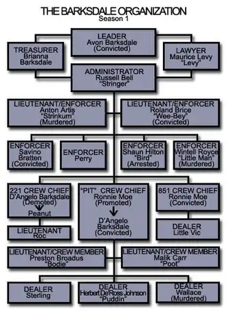 Accepting nothing less than absolute power, Barksdale is shrewd and intuitive, although not as cerebral as Bell. Barksdale is partly based on a real-life gang leader who ran a drug dealing operation in West Baltimore. He is the main antagonist of the first season.