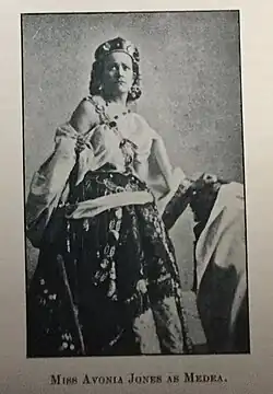 Jones was born in New York City. She came from a theatrical family, the daughter of George "Count Joannes" Jones and Melinda Jones. Her father was an eccentric who was originally a serious Shakespearean actor; he later assumed a title, wrote books, practiced law, and put on increasingly ridiculed productions of Shakespeare.[1] Her mother was a well-regarded actress[2] who travelled with her daughter at the beginning of her career. Avonia and her older sister Caroline were in the custody of their mother after their parents' separation, probably in 1841 when George Jones left for Europe; their parents were divorced in 1850.