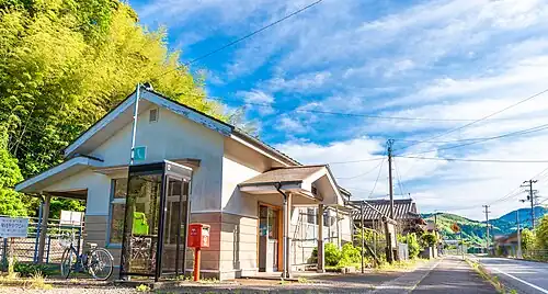 Japan National Route 55 passes in front of the station and there is a lot of traffic, but the surrounding area is mountainous with sparse buildings. The station was originally established as a gateway to Fukui Village (later merged into Tachibanacho and then merged into Anan City), but the village center is about 2 kilometers to the north.