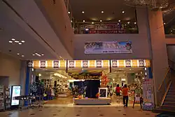 The Awa Odori Hall (阿波おどり会館, Awa Odori Kaikan) is a museum in the city of Tokushima where visitors can learn about Awa Odori, watch displays of the dance and sample local products. It is located at the base of the 280m-high Mount Bizan.[1] The hall also acts as a gateway to neighboring Mount Bizan with the location of a ropeway station on Level five.